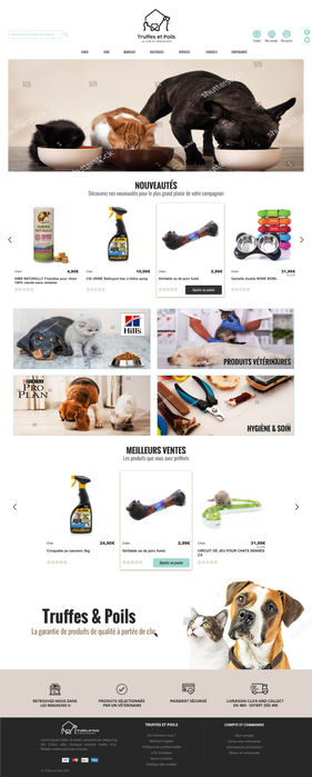 Pour Truffes et Poils, j'ai conçu le design du site e-commerce et de l'application "Sélecteur de Croquettes". Pour cette mission dans le cadre de ma collaboration avec l'agence ADMaker, mon rôle a été de créer des pages harmonieuses et efficaces, intégrées ensuite sur Prestashop par un webmaster.